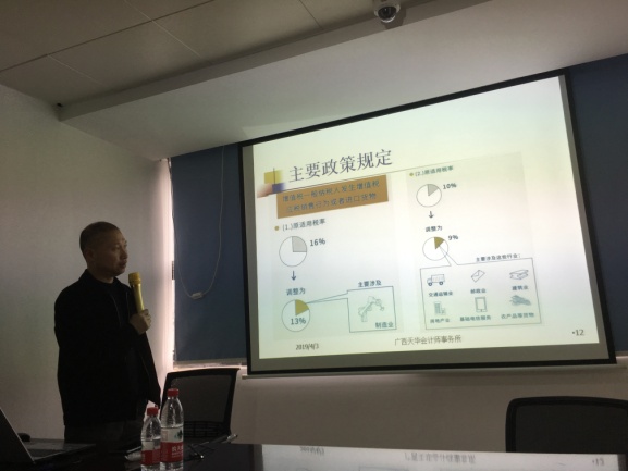 2018年12月中央經(jīng)濟(jì)工作會議、2019年政府工作報(bào)告均強(qiáng)調(diào)實(shí)施更大規(guī)模的減稅,為適應(yīng)當(dāng)前形勢,廣西天華會計(jì)師事務(wù)所在2019年4月3日下午組織財(cái)務(wù)人員、業(yè)務(wù)人員學(xué)習(xí)近期稅收優(yōu)惠政策,緊扣財(cái)政部、稅務(wù)總局《關(guān)于實(shí)施小微企業(yè)普惠性稅收減免政策的通知》(財(cái)稅【2019】13號)、財(cái)政部、稅務(wù)總局、海關(guān)總署《關(guān)于深化增值稅改革有關(guān)政策的公告》(2019年第39號公告)等文件進(jìn)行學(xué)習(xí)。